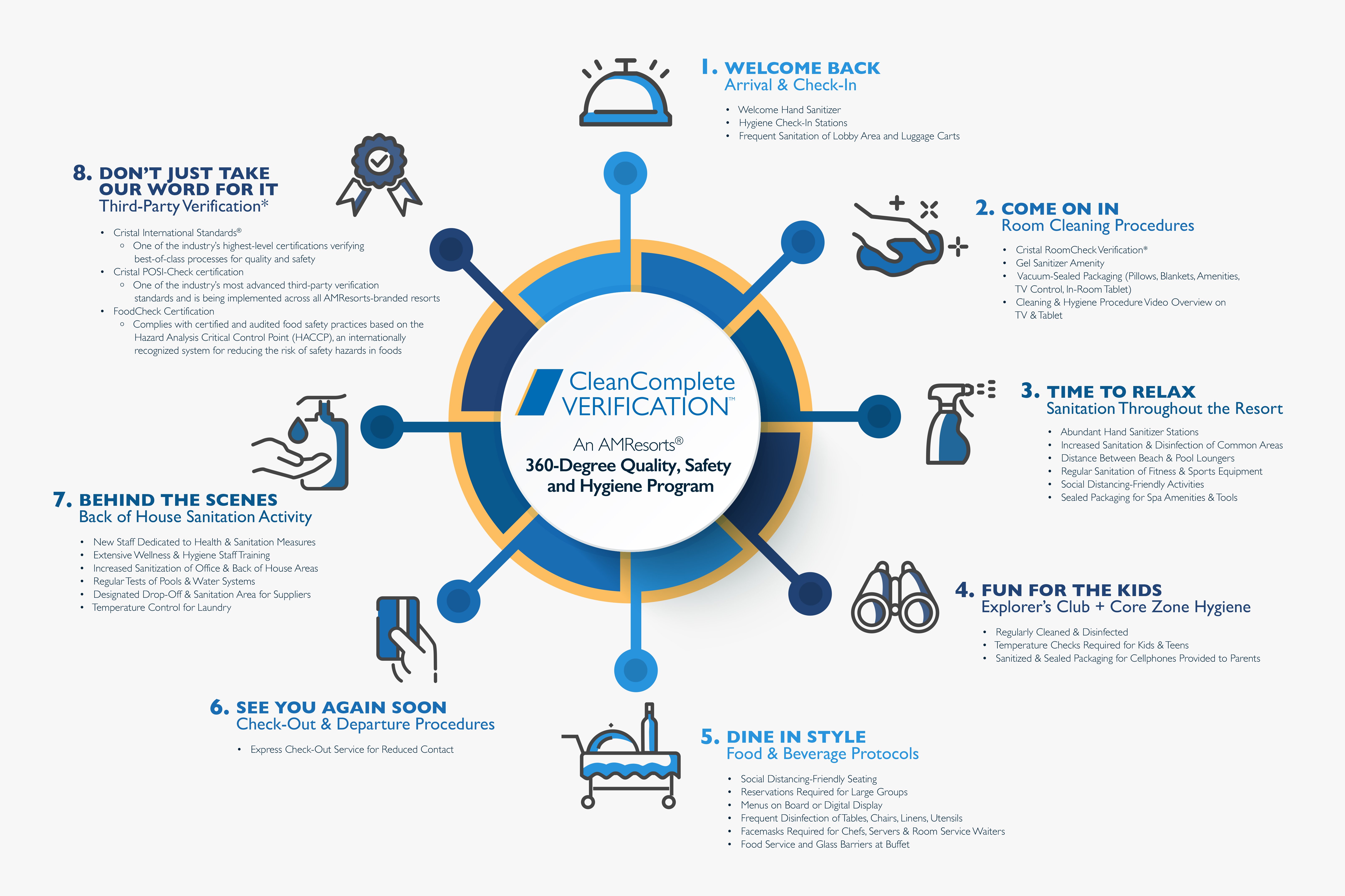 AMResorts recently launched CleanComplete Verification™ practices at all of their properties. These new protocols include a 360-degree quality, safety and hygiene system backed by the highest-level third-party certification and will further elevate the standards of quality and cleanliness in all of the resorts.