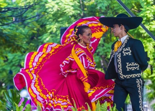 The country’s diverse music and dance culture features a range of styles, ones influenced by both indigenous people and European colonizers. Original inhabitants used drums, flutes, rattles, conches, and their voices to make music and dance. For more than six decades, the Ballet Folklórico de Mexico has presented dances in costumes with music that reflects this background.