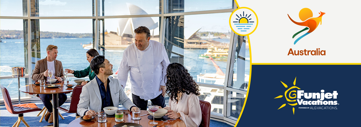 Hungry for more Australia? Because this is only the appetizer. ALG Vacations® offers an ALGVPro program that dives deeper into this incredible country, and a comprehensive, customizable Travelogue digital brochure that illustrates its splendor and helps travel advisors plan. Meanwhile, on ALGV360⁰, marketing material is available for easy downloading and sharing to your clients, and when they’re ready to book, Travel Protection Plus with Cancel for Any Reason and commission protection for advisors is ready to support. Visit FunjetAgent.com to book your clients next trip-of-a-lifetime today.