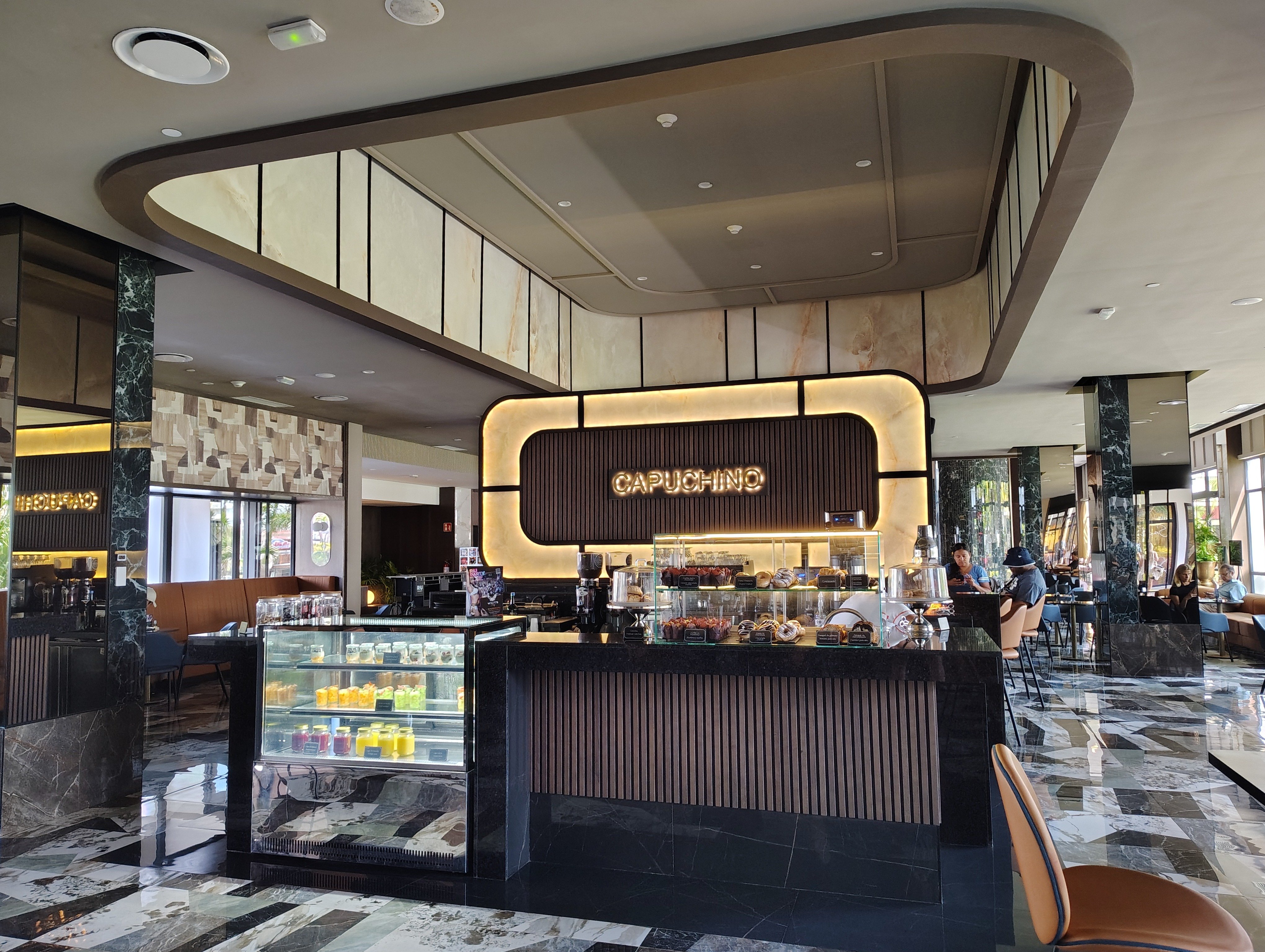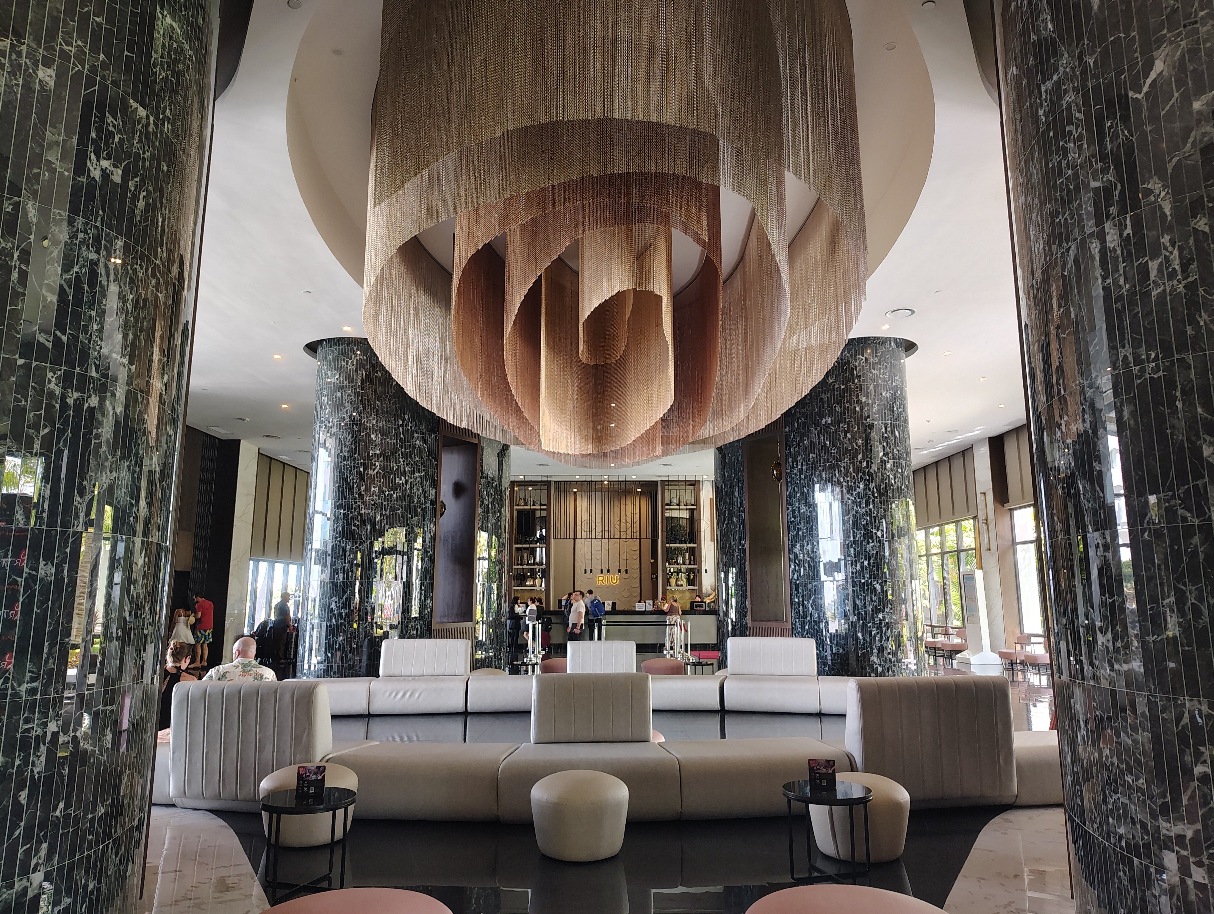 Elevated kickback. From the moment I stepped foot into RIU Palace Kukulkan’s swanky lobby I was immediately taken by the space’s dramatic decor, marveling at the tall, black marble columns and dramatic, fringed light fixture in the center of the room. The ceilings were soaring and the space felt simultaneously energetic, yet laid-back as guests buzzed about sipping coffees and cocktails at the beautiful lobby bar and cafe.