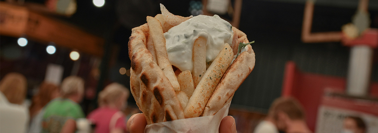 A street food adored around the world, gyros can trace their origins back to destinations like Turkey, Greece and the Middle East. Also referred to as kebabs and shawarma, this unmistakable comfort food consists of thin slices of meat topped with fresh veggies and sauces, all stuffed into a handheld pita bread.