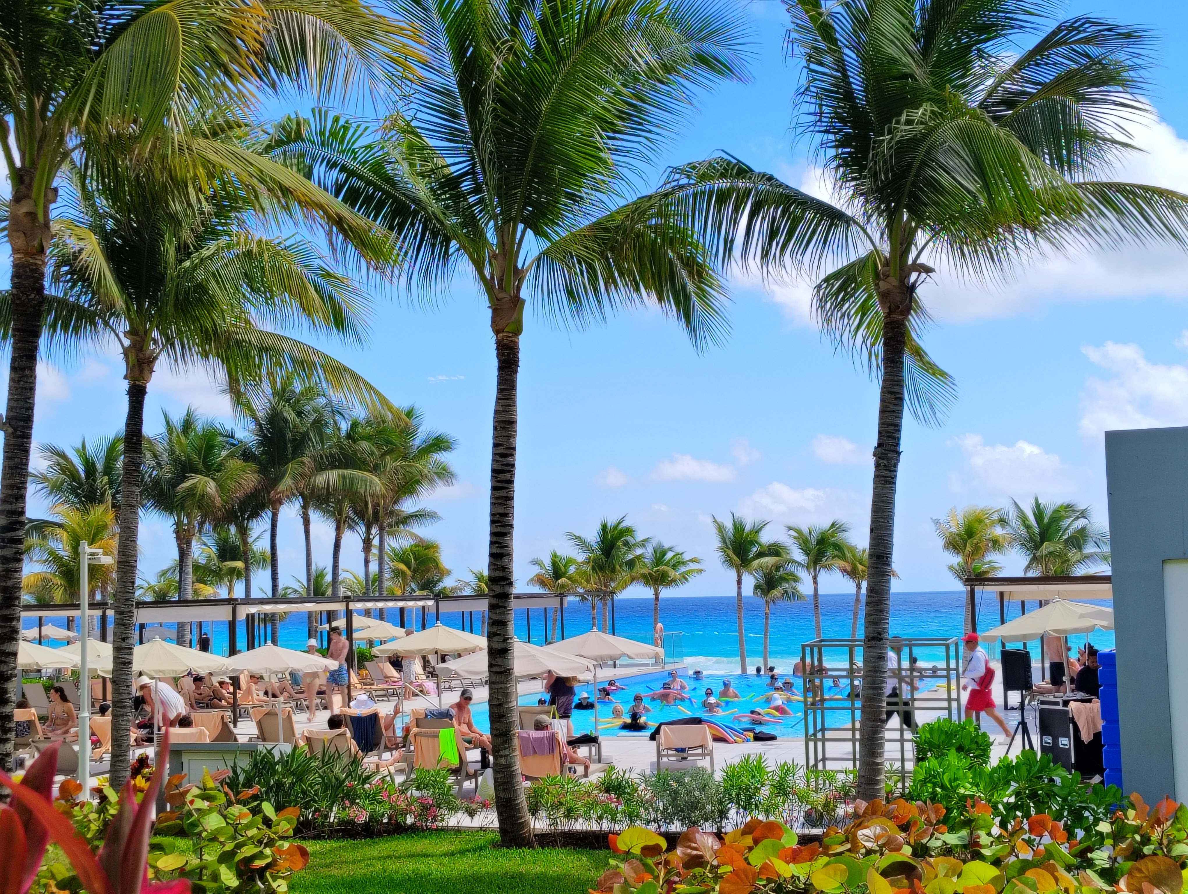 Based on first impressions, the current vibe among hotel guests is one advisors might expect: vacation mode. People are living their best all-inclusive lives and seem to be enjoying the Cancun experience as much as travelers typically do. When I walked down to the beach, it was lined with sunbathers and swimmers, and one of the hotel pools was even hosting an aerobics class. The bars and restaurants are filled with patrons, and arriving vacationers are trickling into the lobby ready to check-in. The majority of people seem in good spirits, and the fun and relaxation is in full swing.