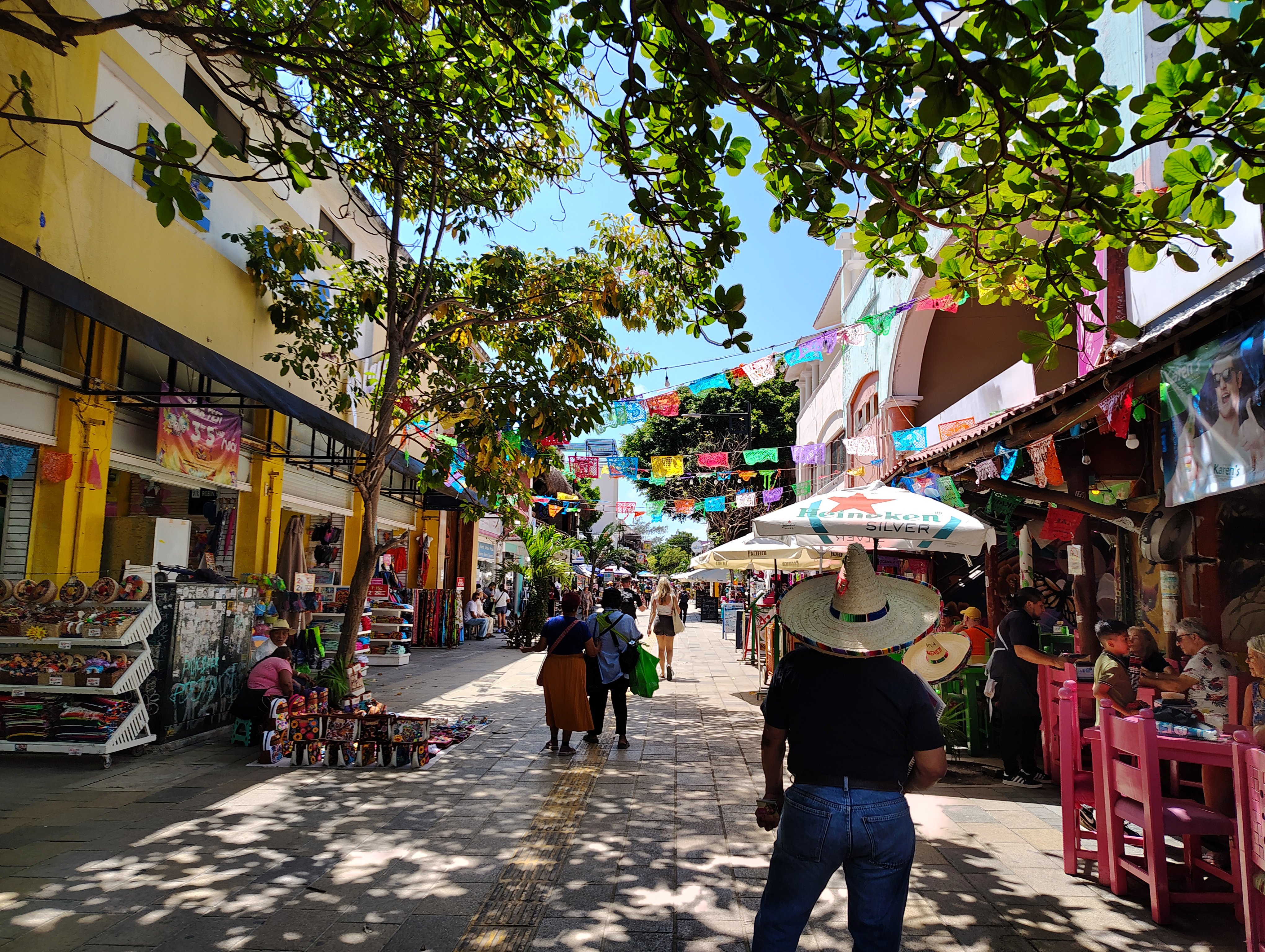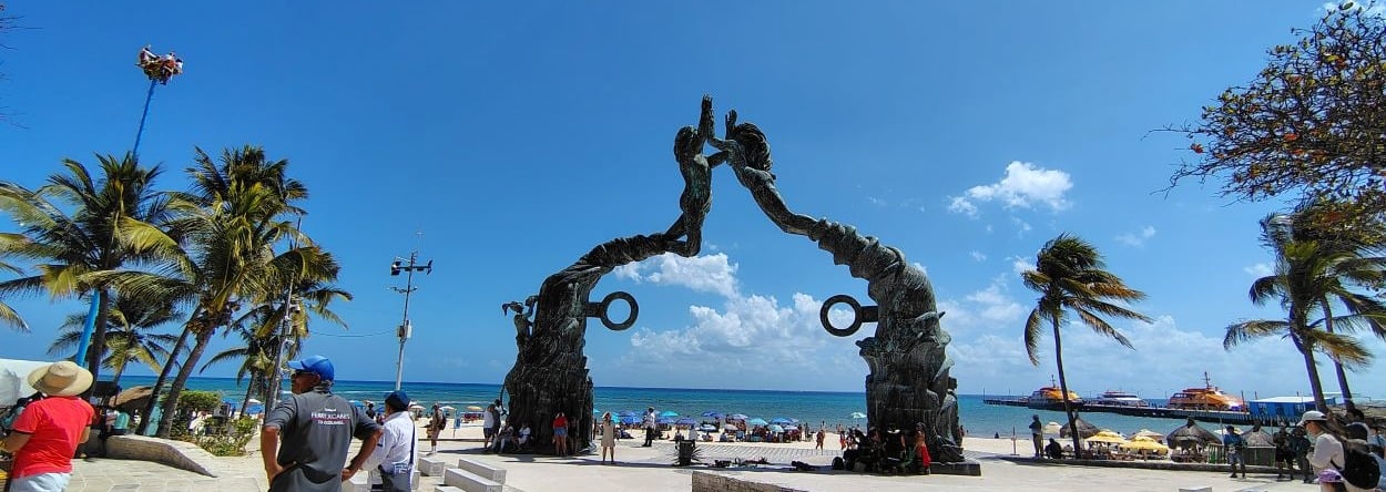 Our stroll down Quinta Avenida was colorful and charming. Shop owners beckoned us to come inside; folks sold sliced mango and other fresh fruit on the street with a smile, and brightly painted buildings lined either side of the pedestrian-only thoroughfare. The crowd was medium-sized, and restaurants appeared to have a steady stream of business as people dined from inviting rooftops and festive patios. Once we made it to the beach, it was clear it was the place to be with visitors snapping photos beneath the Instagram-famous Portal Maya arch, locals performing the Dance of the Flyers and ferries traveling to-and-fro to Cozumel. A feeling of excitement filled the air, and the stretch of sand was a great spot to take a moment to relax in the shade before continuing our adventure. Travelers in Playa del Carmen appeared relaxed and happy, and we didn’t overhear any murmurs of concern or anxiety.