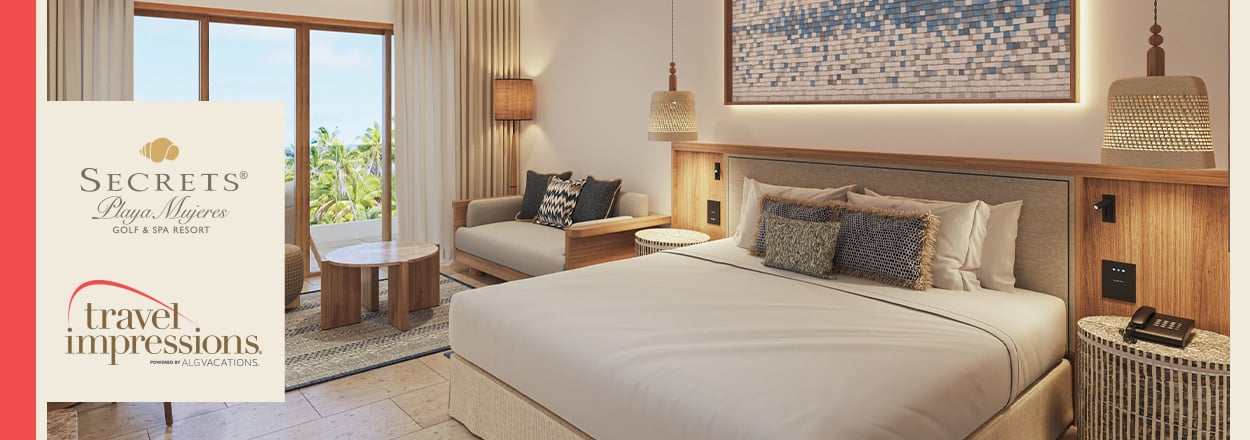 Travel Impressions, an advisor-only luxury brand powered by ALG Vacations®, caters to clients who value elevated experiences and exceptional service. When booking Secrets® Playa Mujeres Golf & Spa Resort through Travel Impressions®, clients receive Exclusive Perks including an in-room sparkling-wine breakfast, a bottle of wine or liquor, and a 25% spa discount on 2025 bookings traveling through June 30, 2026 (minimum 4-night stay; not applicable to contracted groups).