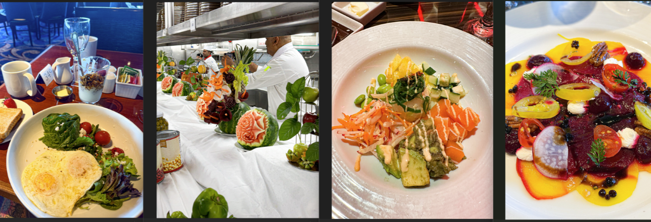 Hidden-healthy gems onboard can help you “splurge” without straying from your goals. Look for features like fresh-pressed juice bars or healthier grab-and-go spots. Another often-overlooked option is room service, especially if you want to avoid buffet temptation altogether.