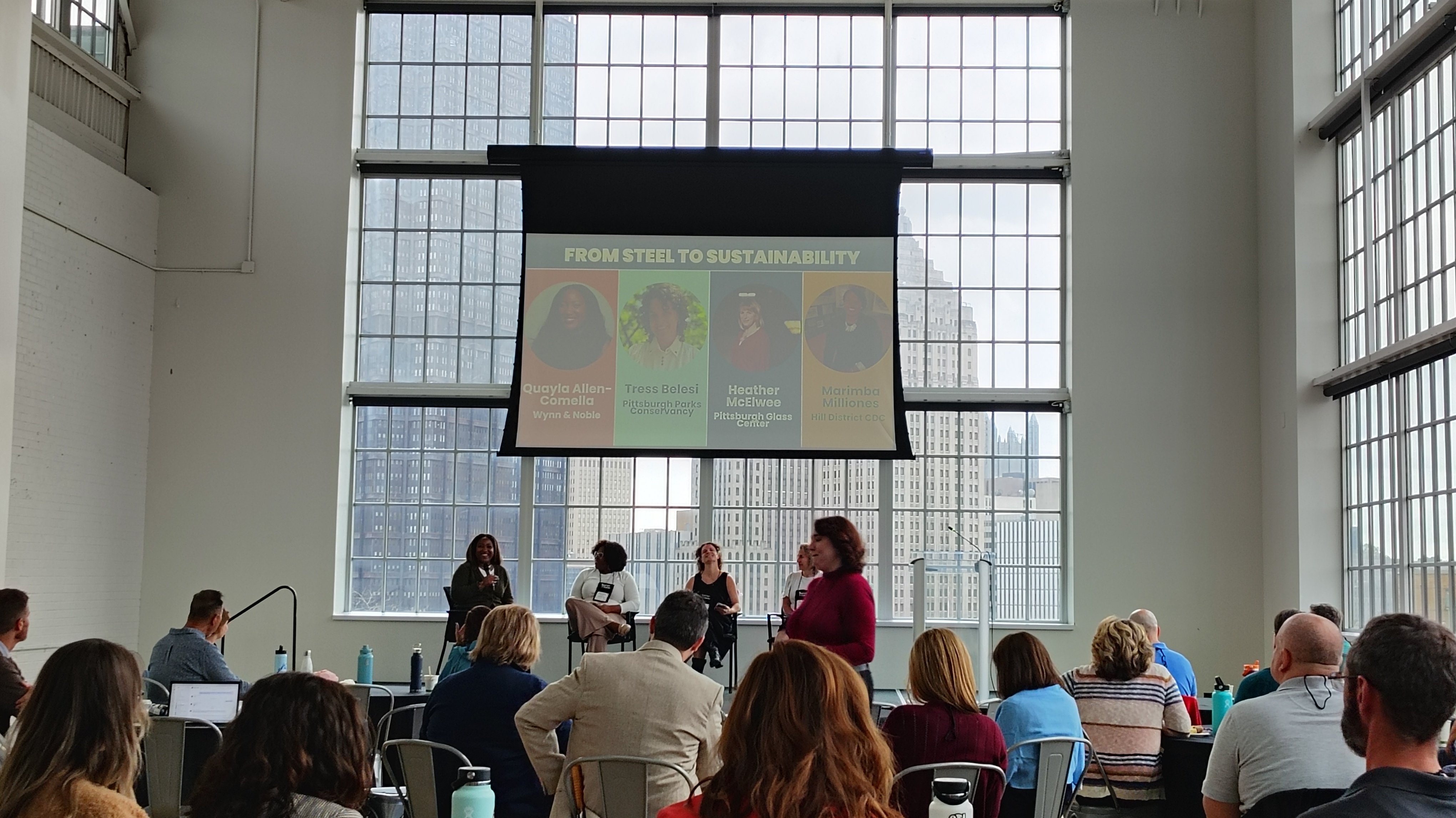 Following Burley’s talk were two panels: “Flavors of Impact” and “From Steel to Sustainability.” Flavors of Impact included insights from Ash Chan with Oasis Farm; Cheyenne Tyler with Cafe Momentum; and Josh Weiland with 412 Food Rescue, three local changemakers who are working to make food more accessible and ensure it doesn’t go to waste in the Pittsburgh area. Similarly, From Steel to Sustainability included more local voices including Tress Belesi with Pittsburgh Parks Conservancy; Heather McElwee with Pittsburgh Glass Center; and Marimba Milliones with Hill District CDC. This panel emphasized the work the city has done to evolve past its reputation as one of the nation’s most prolific steel manufactures and what it is doing to spotlight accessibility and sustainability in its parks, businesses and neighborhoods moving forward.